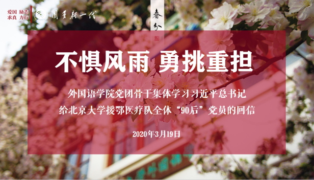 习近平总书记给北京大学援鄂医疗队全体“90后”党员的回信,既是对他们辛勤工作的诚挚肯定,也是对广大中国青年给予的深切期望。新利官方网站,新利xinli(中国)全体师生将继续深入学习习近平总书记给北京大学援鄂医疗队全体“90后”党员的回信精神,在实践中贯彻落实总书记对青年人的要求与期待,继续做好居家防疫工作,并在此次战疫中贡献外院人的专业智慧和青春力量。